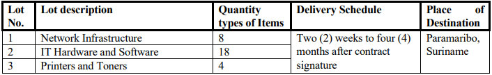 - The Government of Suriname has received financing from the Inter-American Development Bank toward the cost of Foreign Investment and Export Promotion Program, and it intends to apply part of the proceeds of this financing to payments under the Contract for the Supply and Installation of IT Equipment.